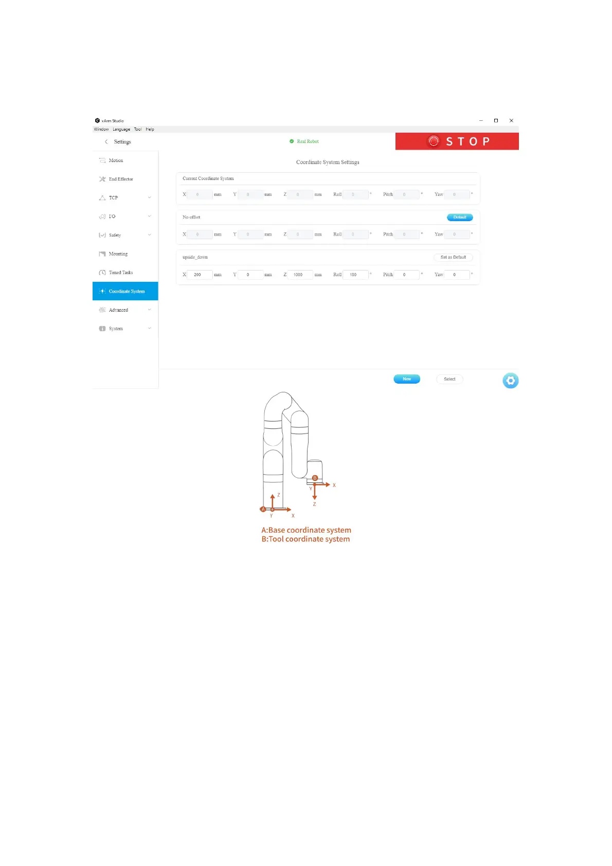 system. X, Y, Z are coordinate values that are offset relative to the base coordinate