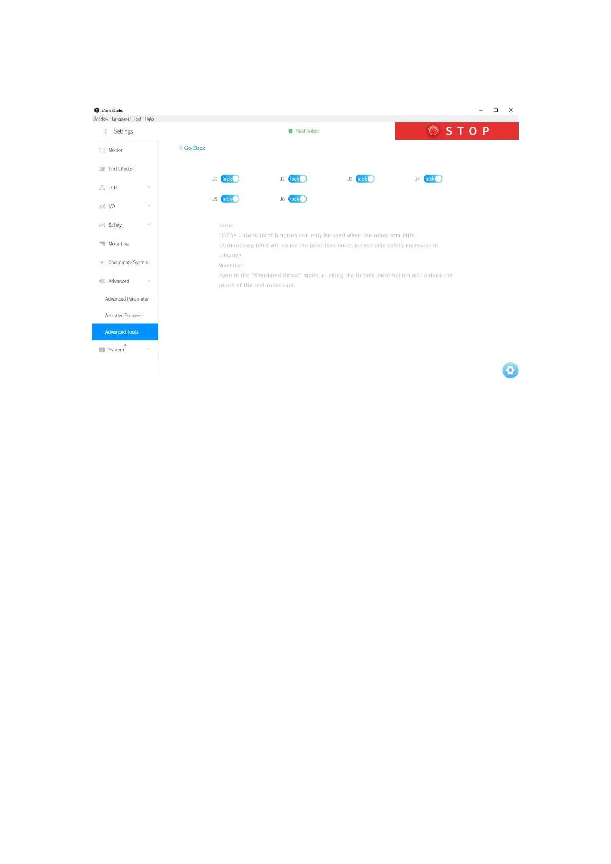 3. In the "simulated robotic arm mode", clicking the unlock joint button will also