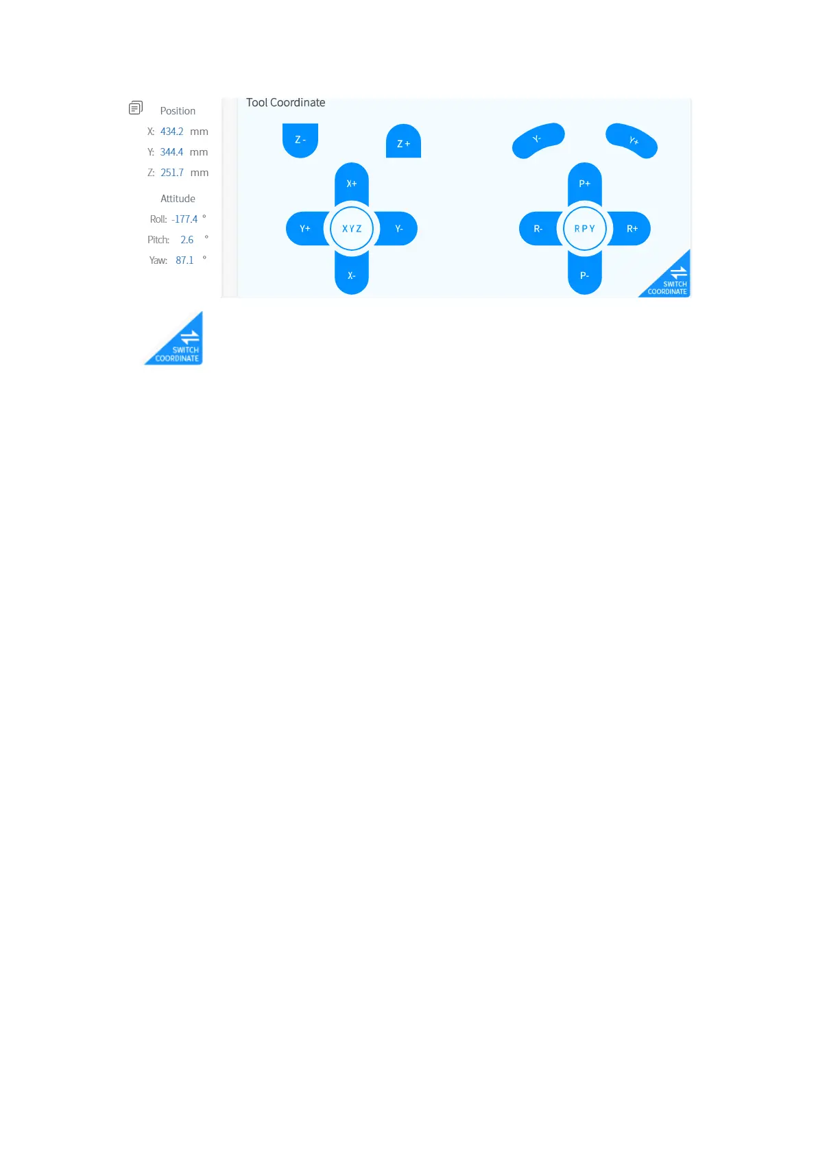 ● X / Y / Z represents the coordinates of the tool center point (TCP)