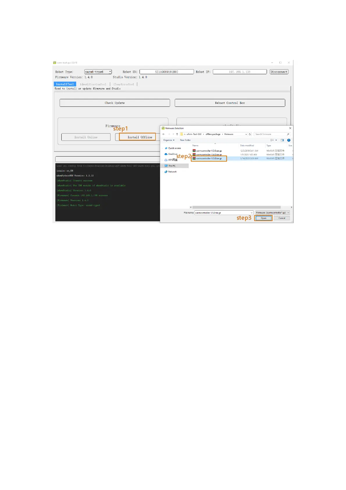 xArm Studio to update the xArm Studio and xArm firmware online.