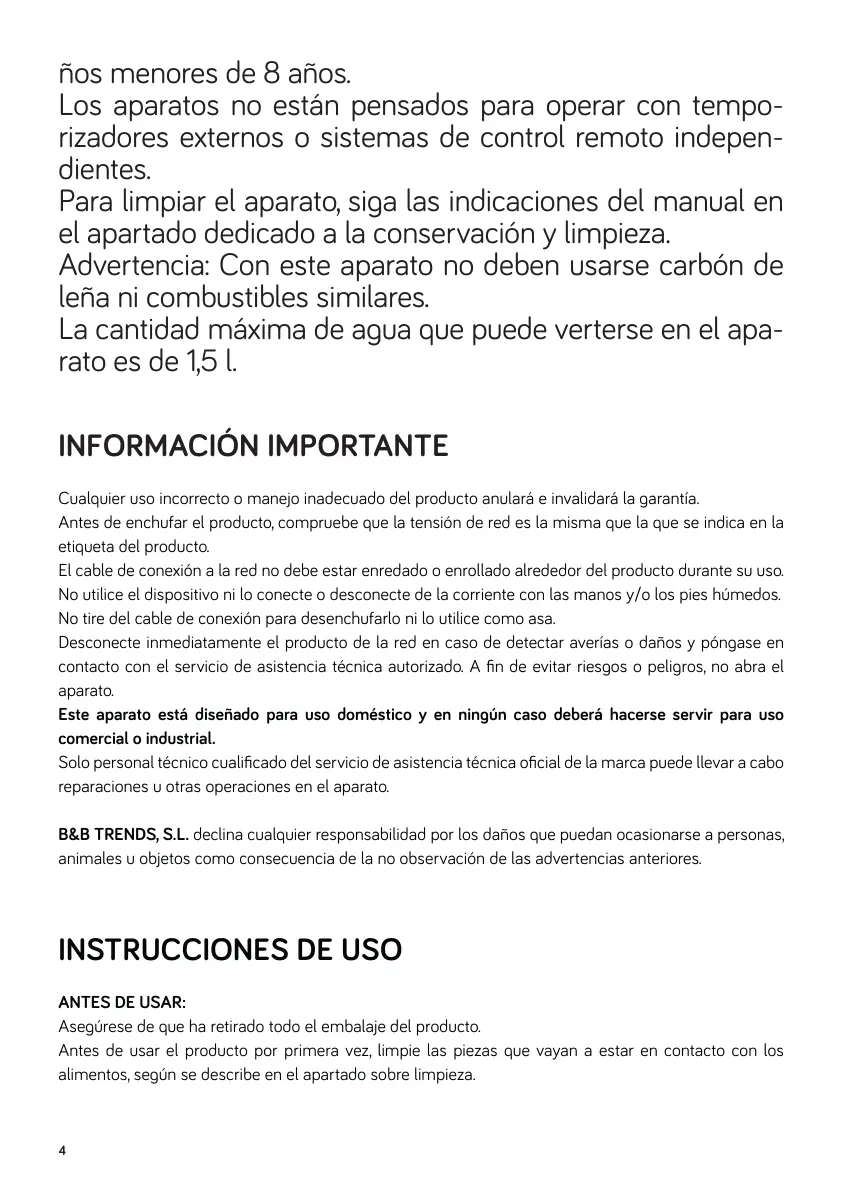 B&B TRENDS, S.L. declina cualquier responsabilidad por los daños que puedan ocasionarse a personas,