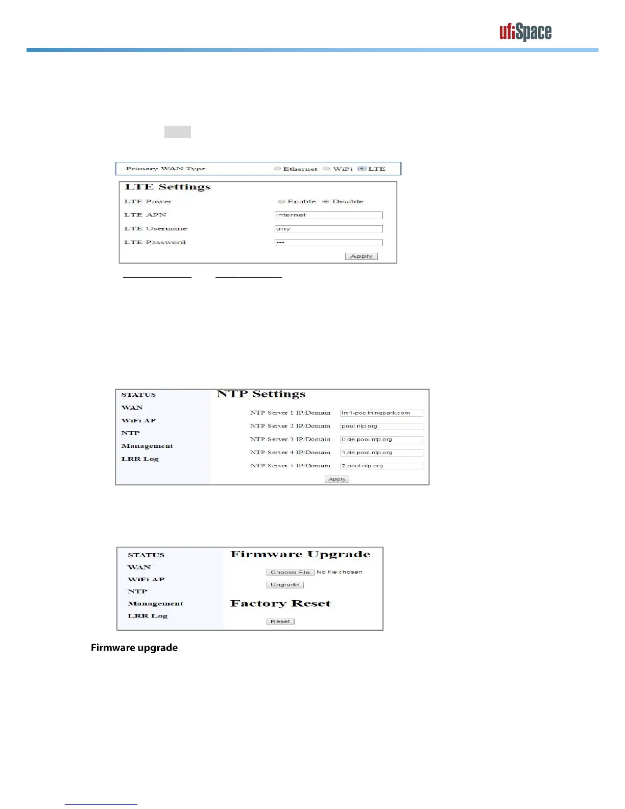 Select [NTP] page for setting NTP configuration. You will need to change this setting if LoRa