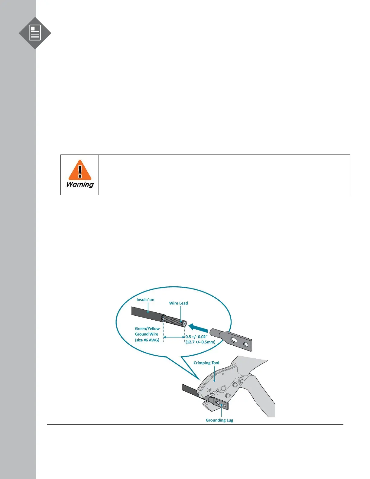 contents), leaving 0.5” +/-0.02” (12.7mm +/-0.5mm) of exposed grounding wire.