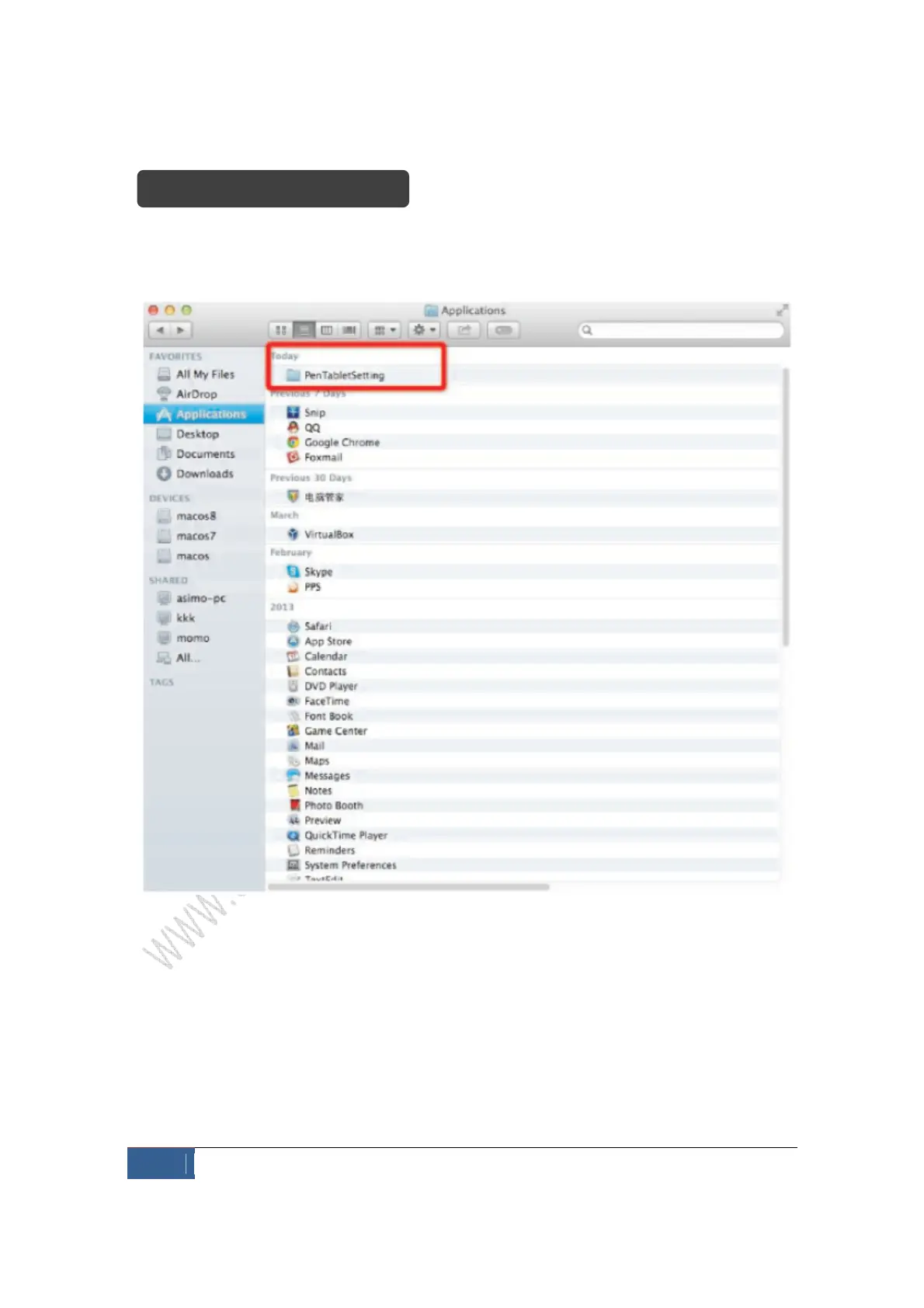Open “Finder” > “Applications” > “Pen Tablet Settings” > Open “Pen Tablet Settings”