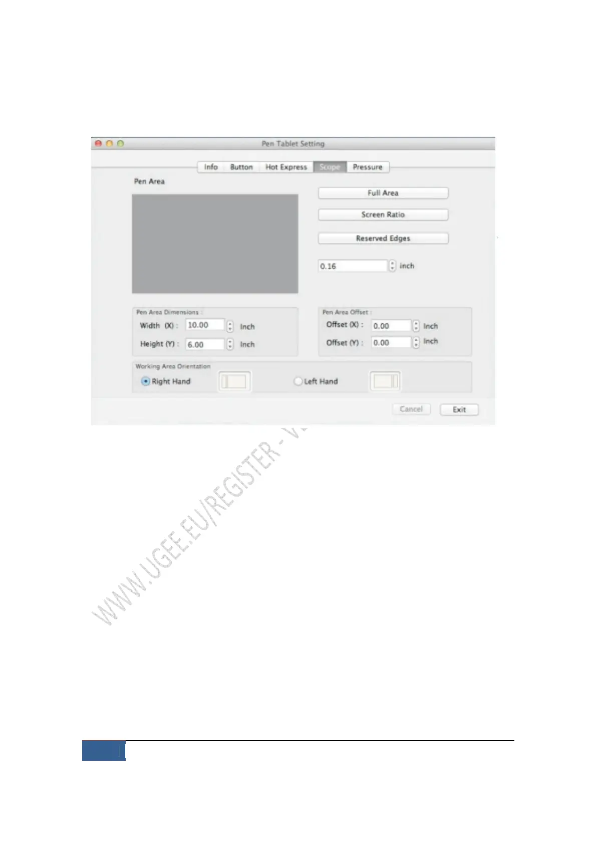 Size and position of the working area in the tablet can be customized. B Area Exhibit 6