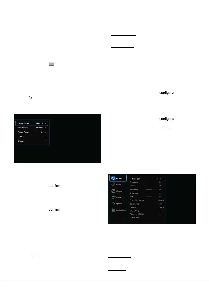 Picture preset: Use ◄/► to scroll through the picture