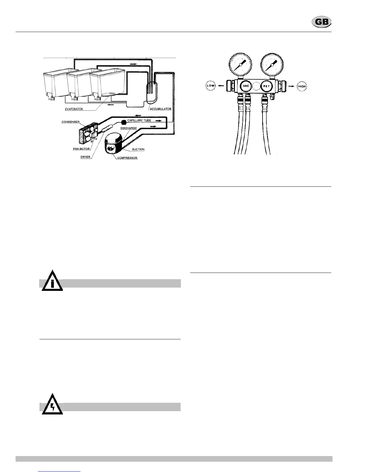2 Connect the VAC port of the gauge set to the vacuum pump