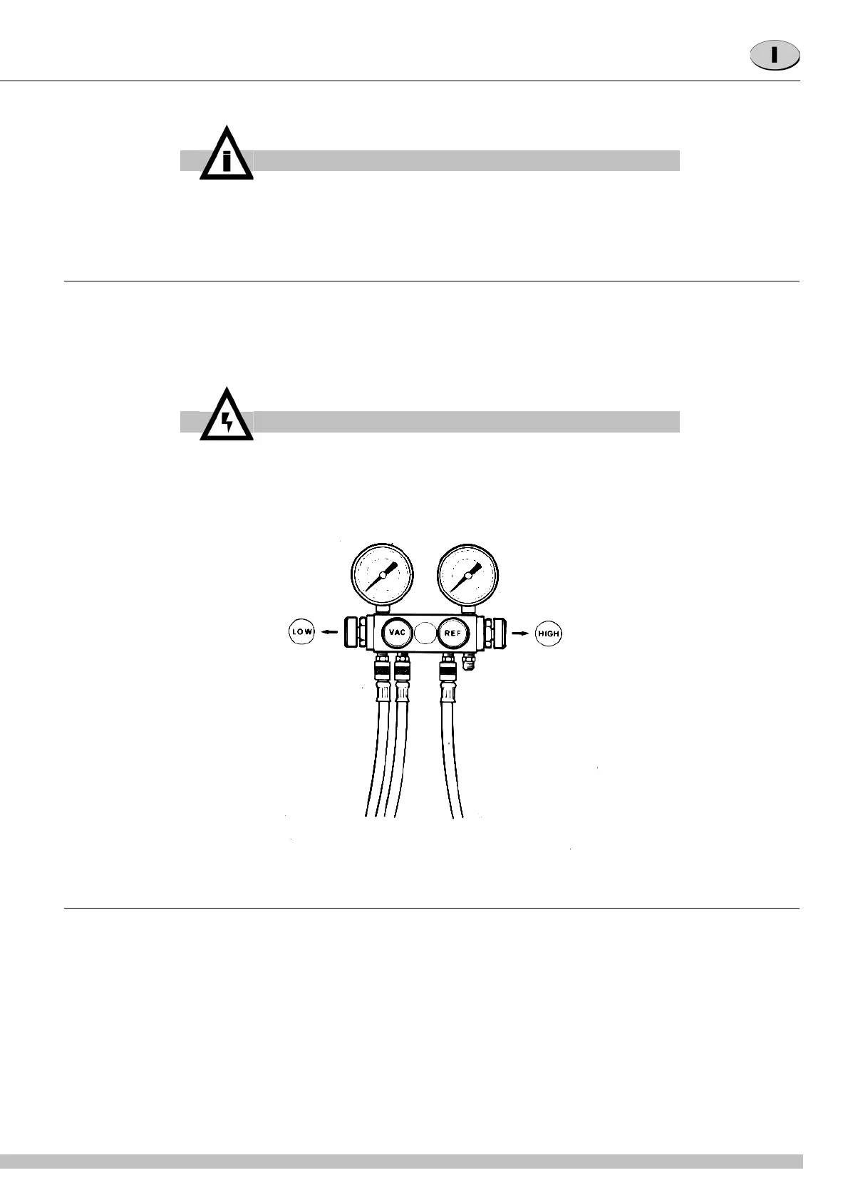 4 Collegare il bocchettone “VAC” del gruppo manometrico ad un adeguato ed approvato dispositivo di recupero del gas.