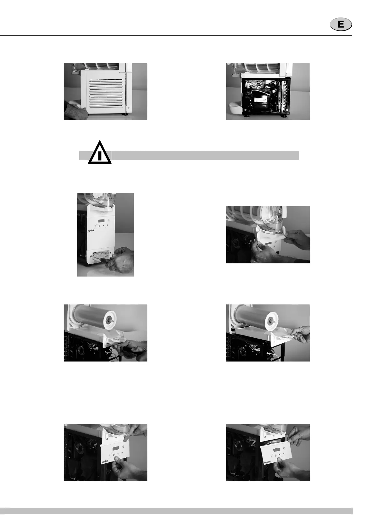 3 Desatornillar los tornillos y sacar el panel anterior. Sacar luego la cobertura de la salida del agua de condensación.