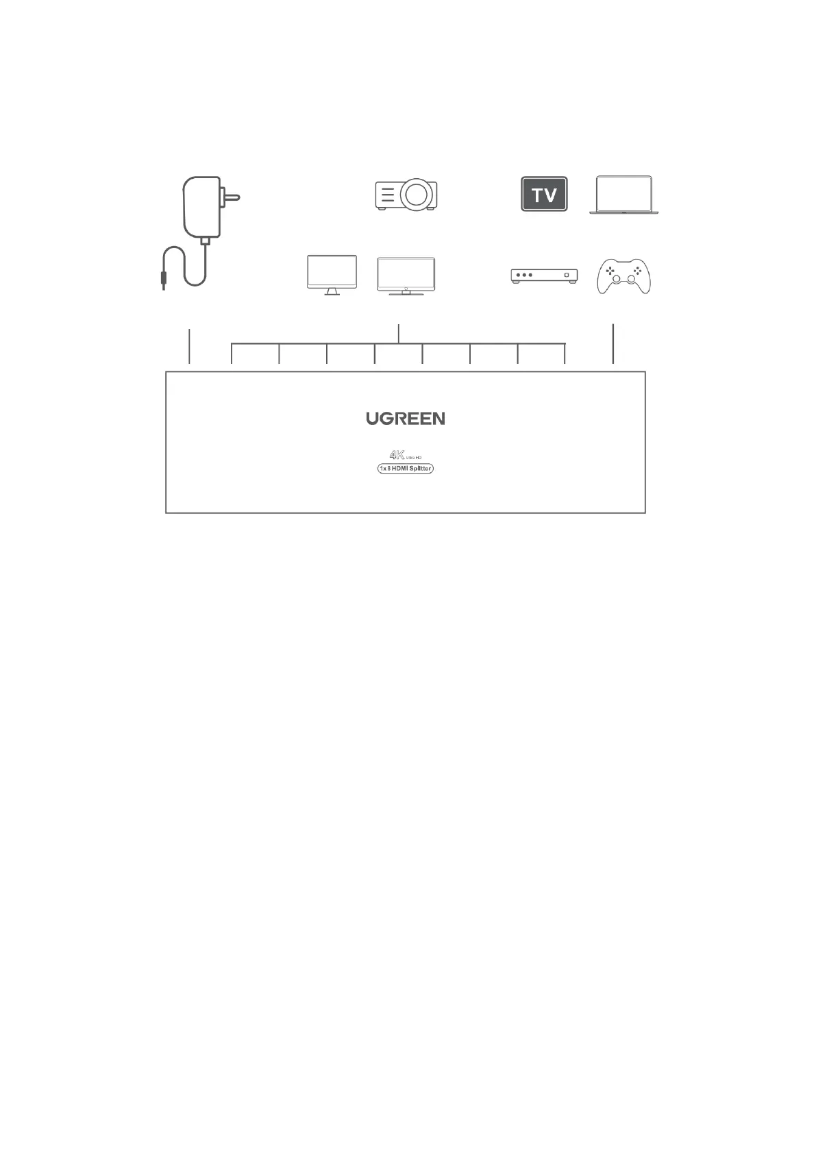 2. Verwenden Sie HDMI-Kabel, um die Anzeigegeräte mit dem Splitter zu verbinden.