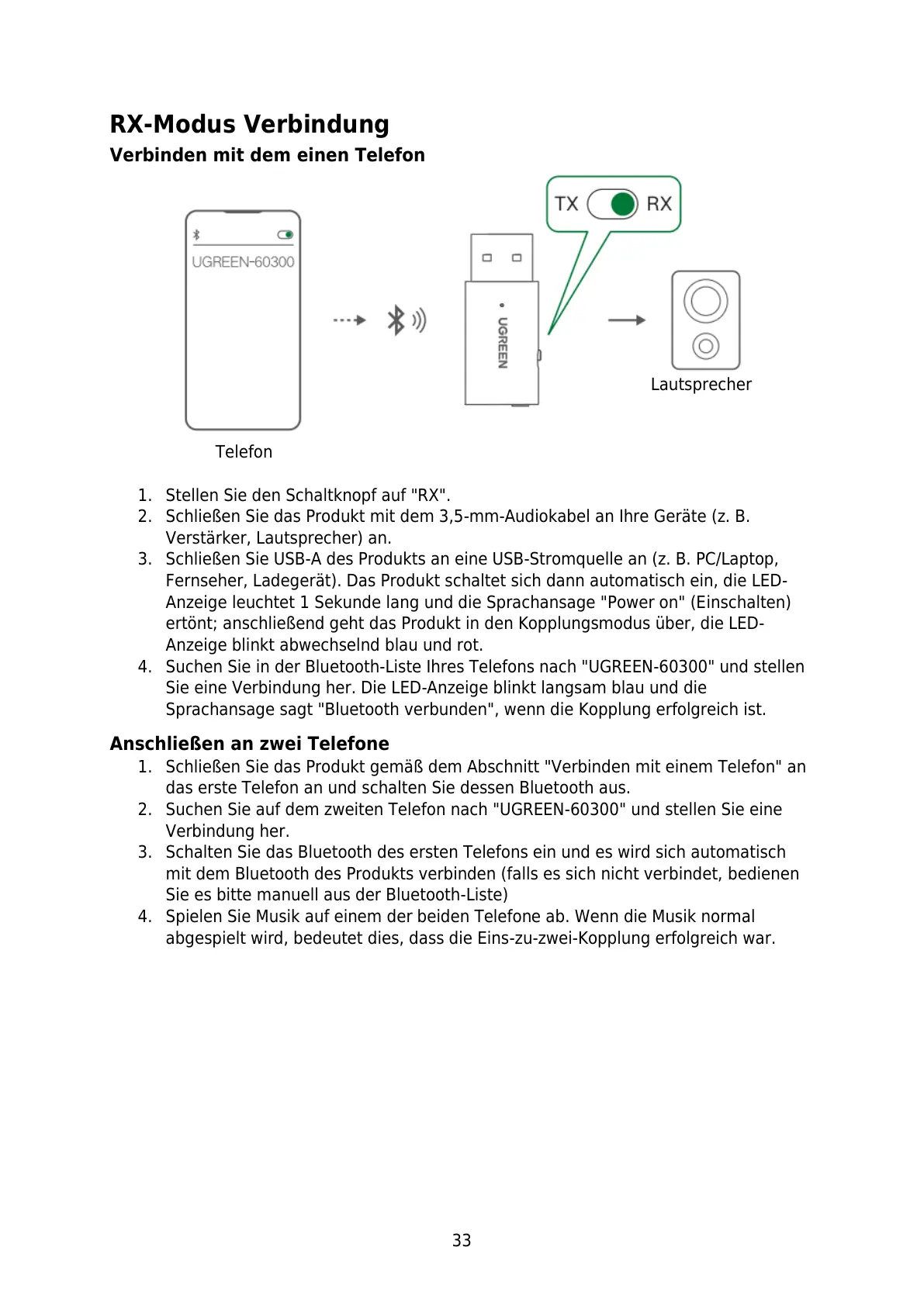 4. Suchen Sie in der Bluetooth-Liste Ihres Telefons nach "UGREEN-60300" und stellen