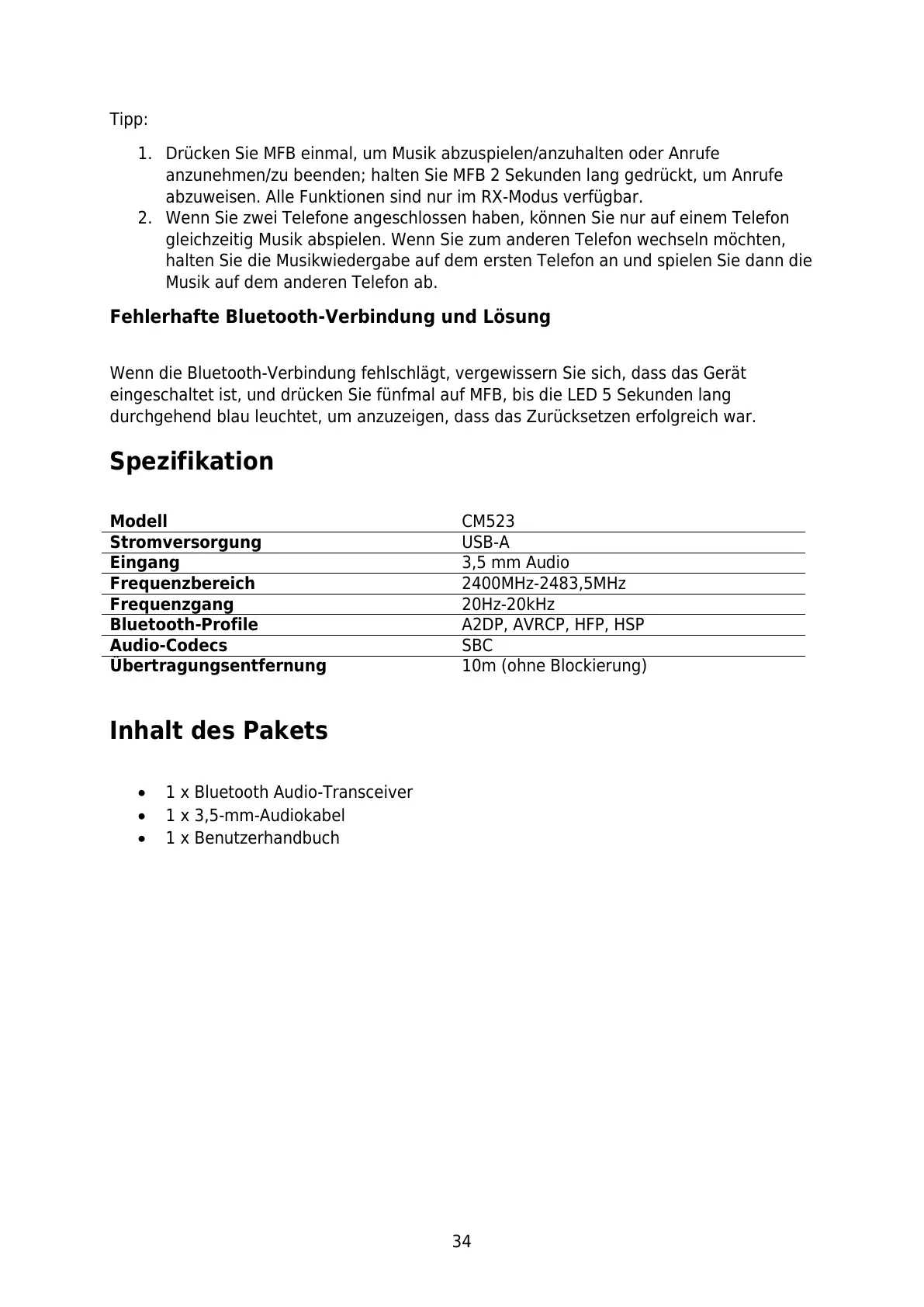 1 x Bluetooth Audio-Transceiver