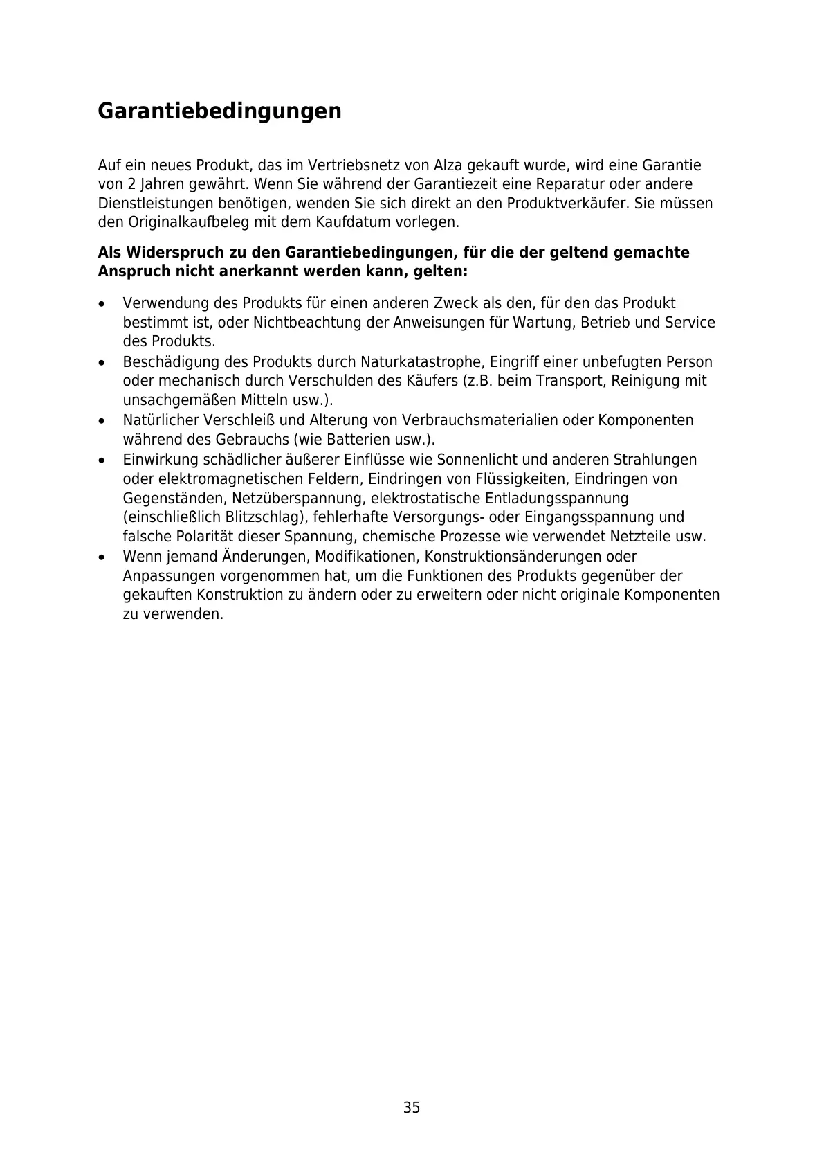 Als Widerspruch zu den Garantiebedingungen, für die der geltend gemachte