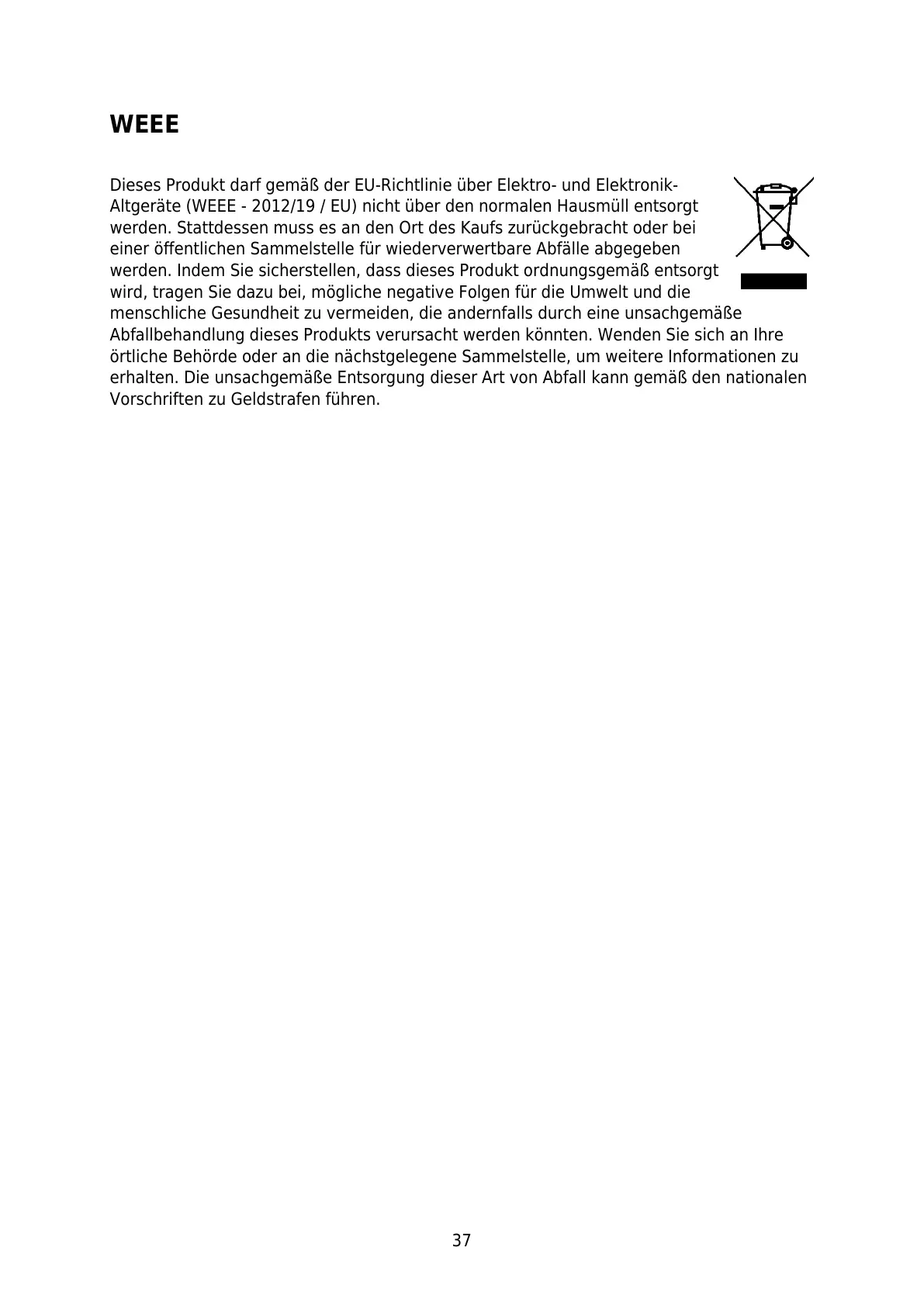 Dieses Produkt darf gemäß der EU-Richtlinie über Elektro- und Elektronik-