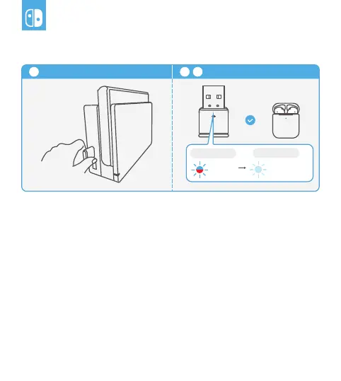 ① Plug the transmitter into Switch or the dock based on the mode you used. It will