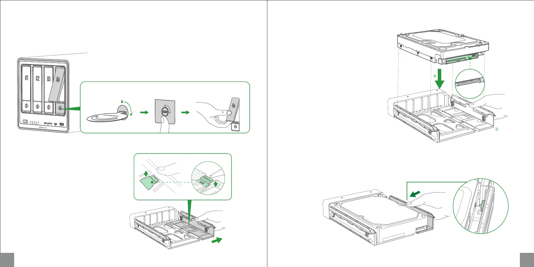 Use the key to unlock the hard drive tray, and press the buckle to pop the handle out, then pull the tray out.