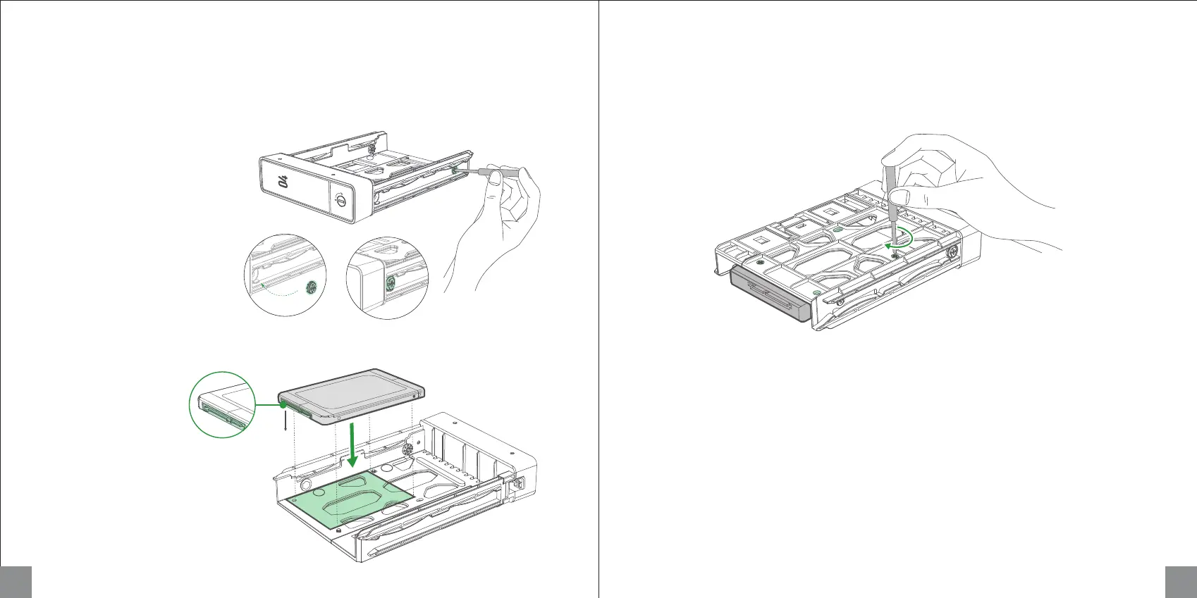 3. Turn the tray upside down and tighten the screws to secure the drive in place. Then insert loaded