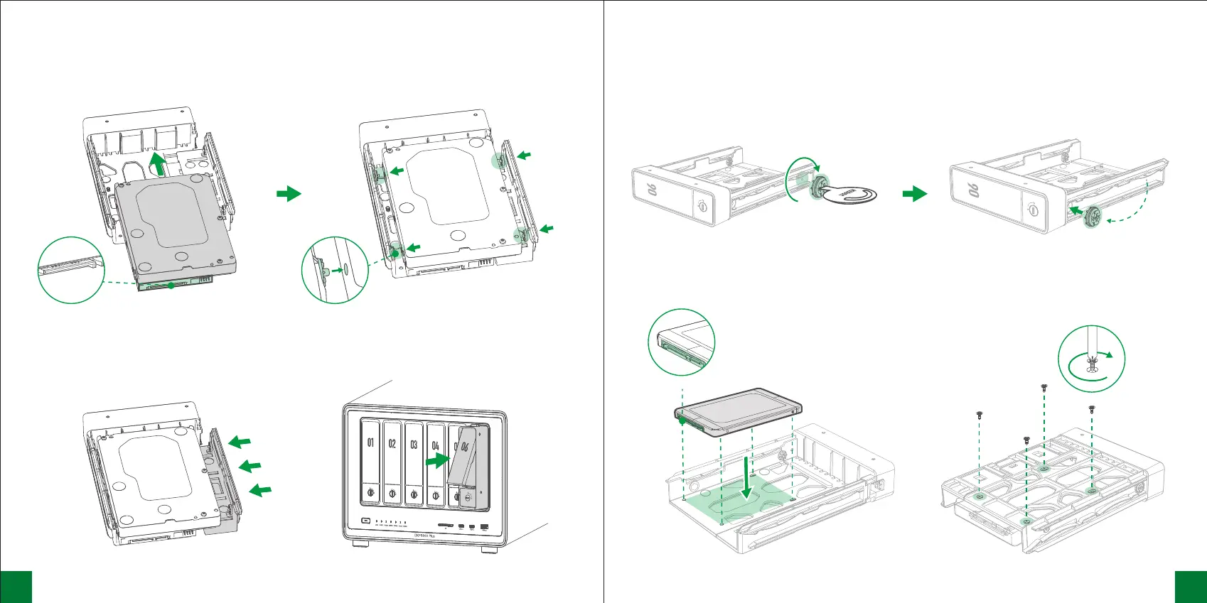2. 放置硬盘将硬盘与托架上的四个螺丝孔对齐装入