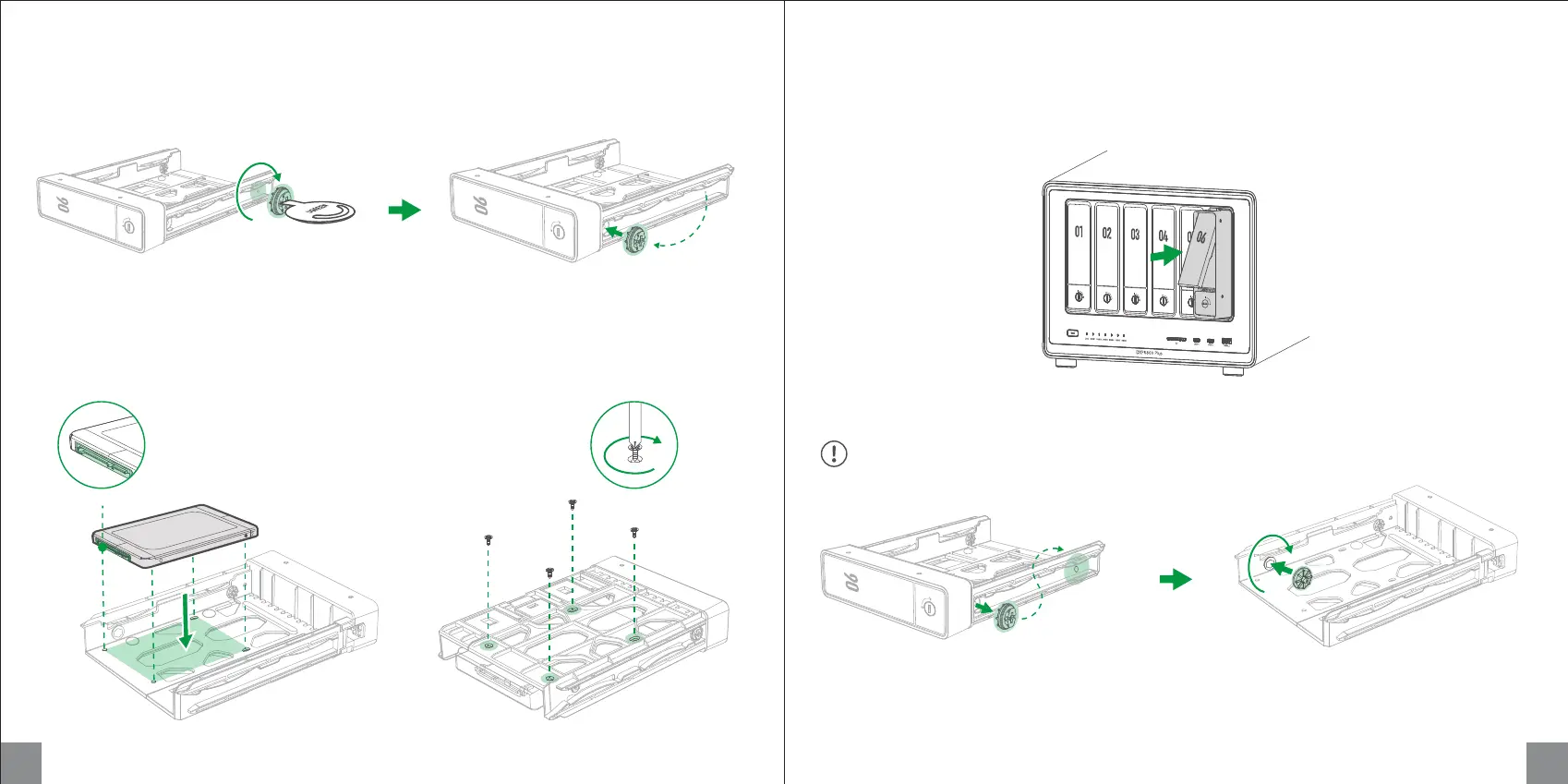 4. Load the tray into the bay: Insert the loaded drive tray into the empty drive bay and lock it.
