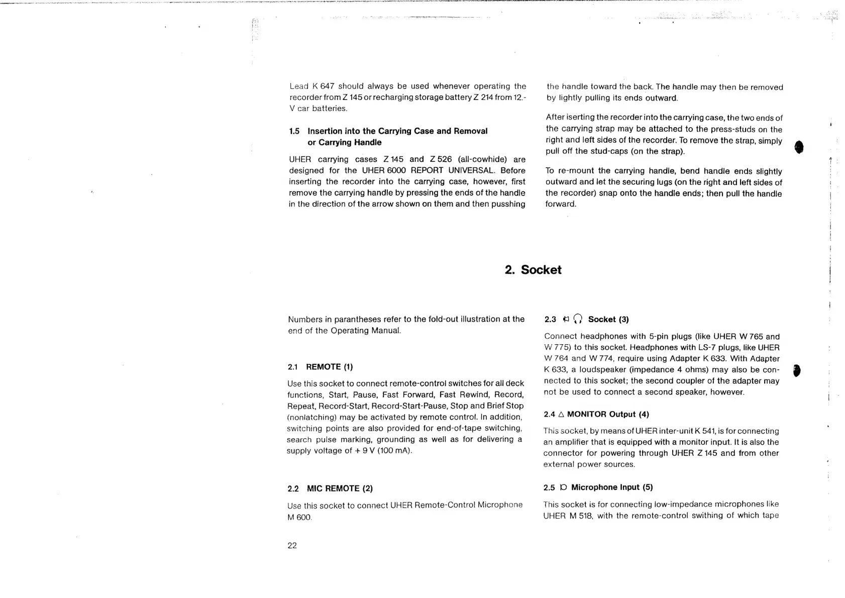 uher 6000 REPORT UNIVERSAL - Insertion into the Carrying Case and Removal; Or Carrying Handle; Remote; MIC Remote