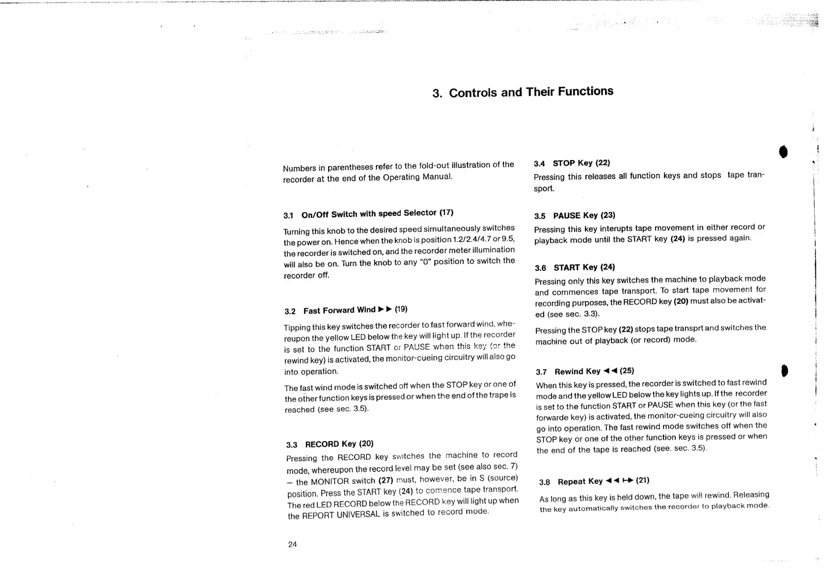 uher 6000 REPORT UNIVERSAL - STOP Key; PAUSE Key; START Key; Rewind Key