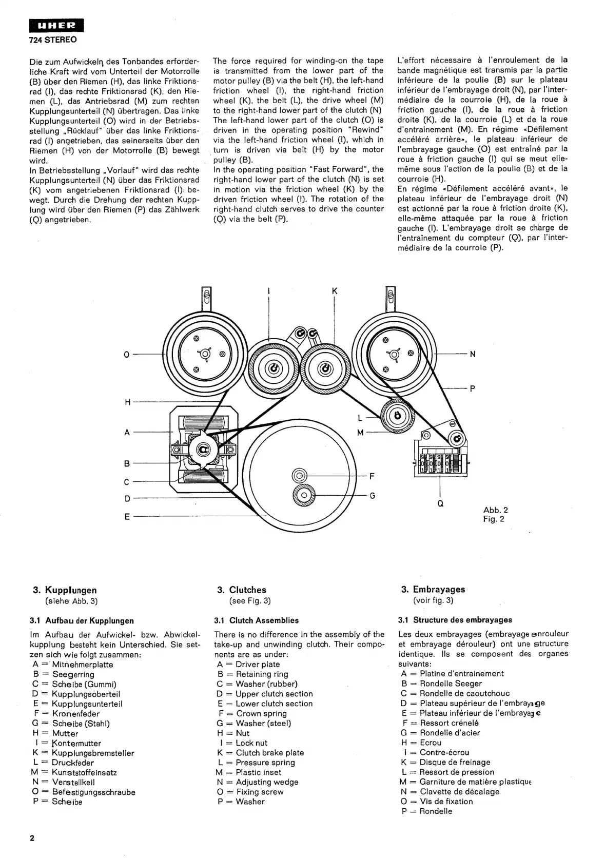 uher 724 Stereo - Clutches; 3.1 Clutch Assemblies