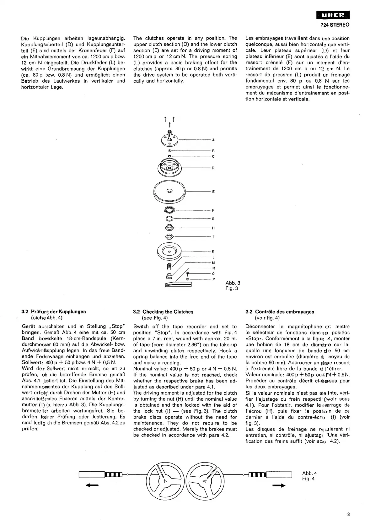 uher 724 Stereo - 3.2 Checking the Clutches