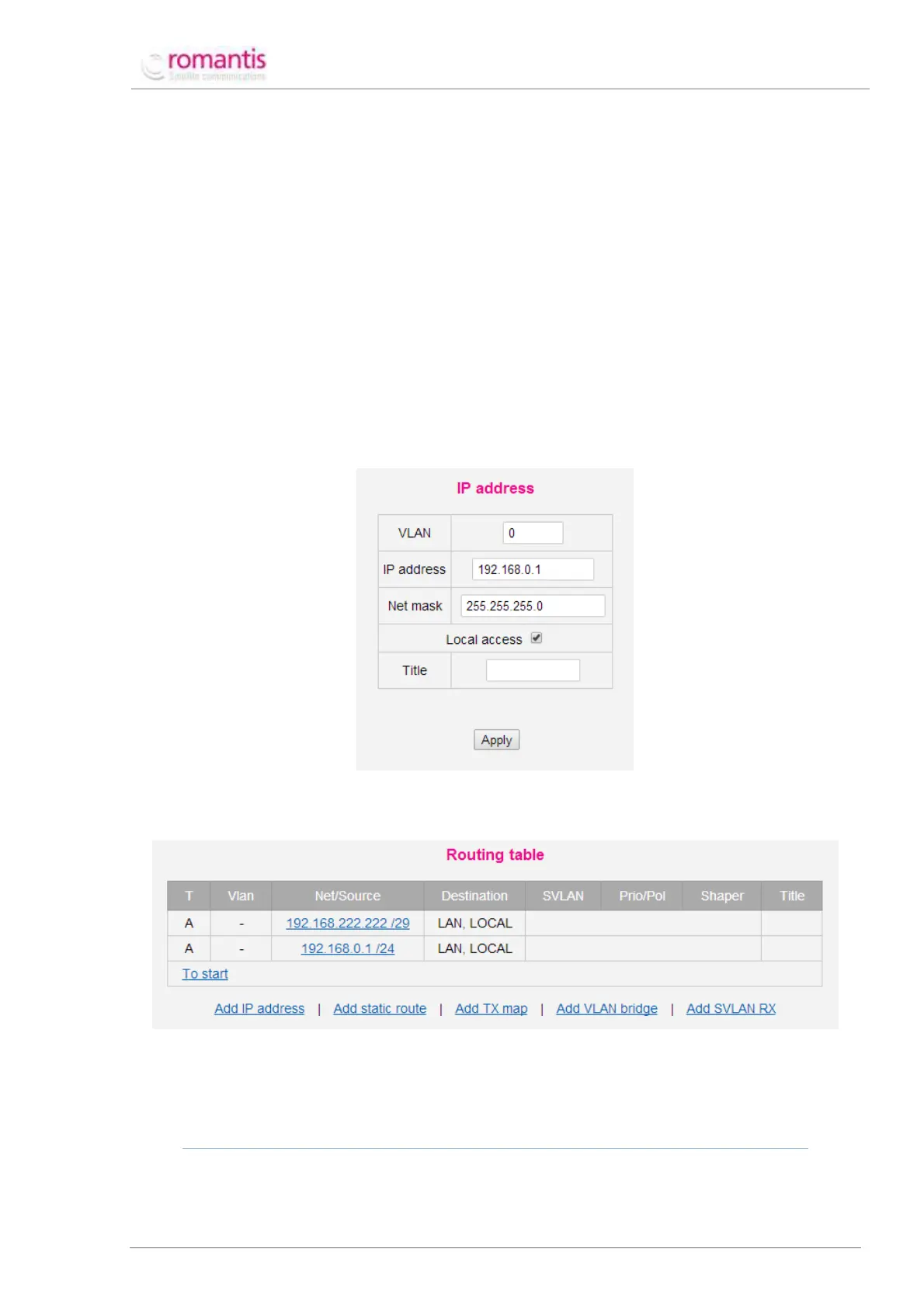 After a new IP-address is assigned the routing table will appear as shown below (see Figure 5).