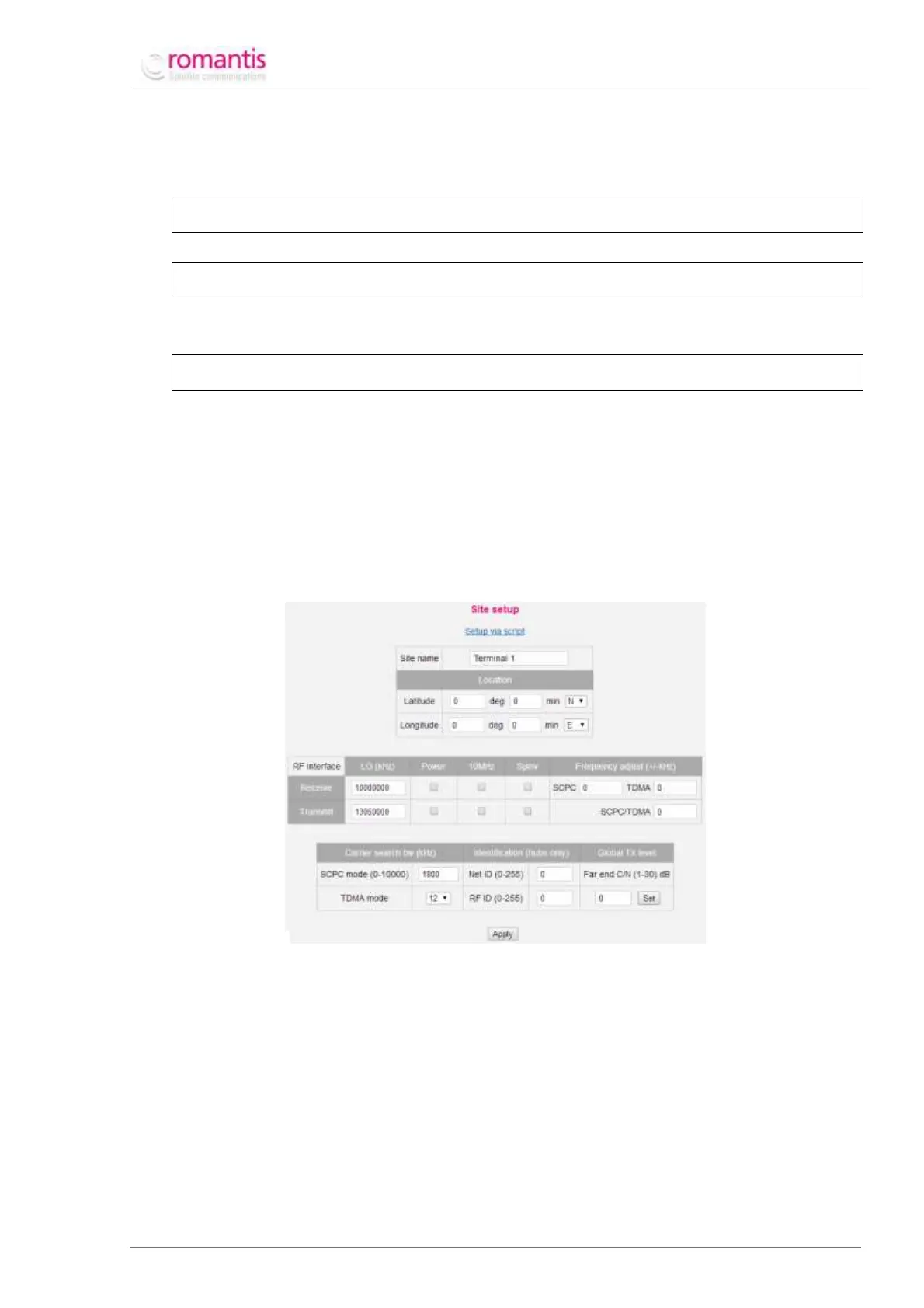 Site setup window (see Figure 6) is used to configure the following parameters: