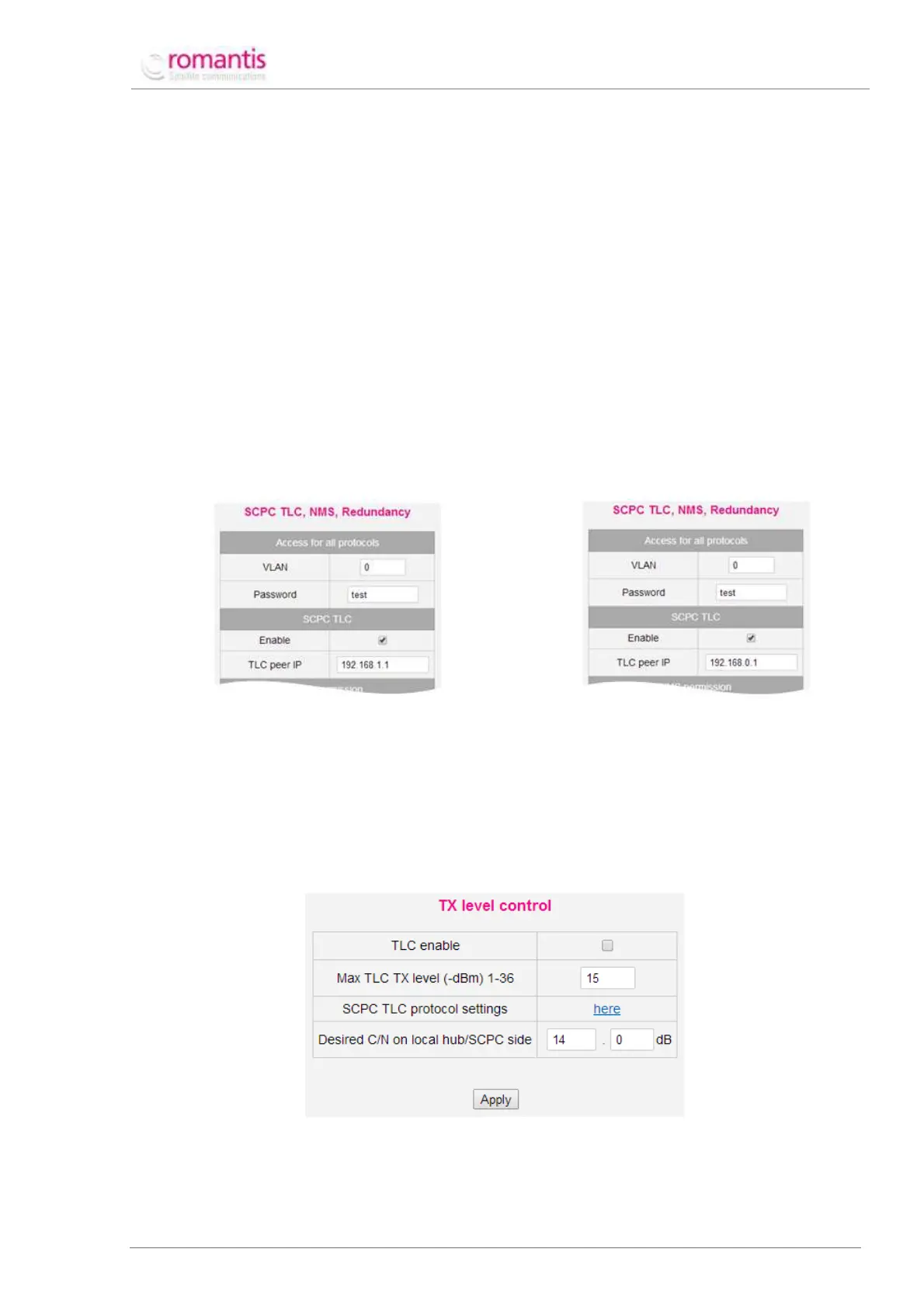 Desired C/N receive level on the remote Station (Desired C/N on local hub/SCPC side) should be set using TX level