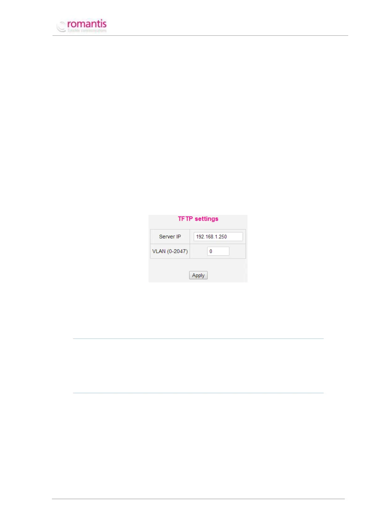 Go to Advanced –> IP protocols –> TFTP in the Menu of commands. Enter TFTP server’s IP address on the