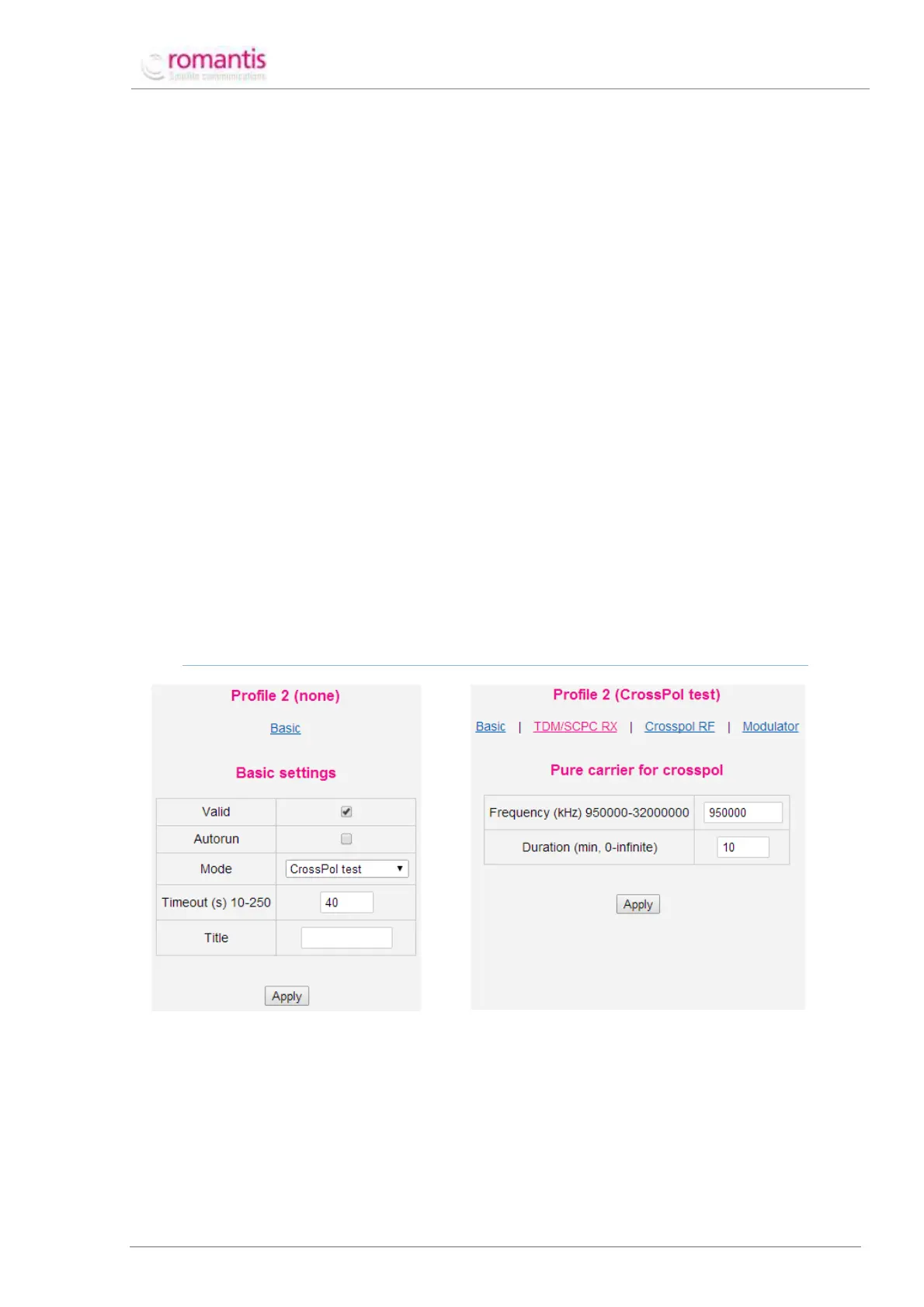 mode value) profile in the profile table (see Figure 33) and set CrossPol test value of the Mode setting;