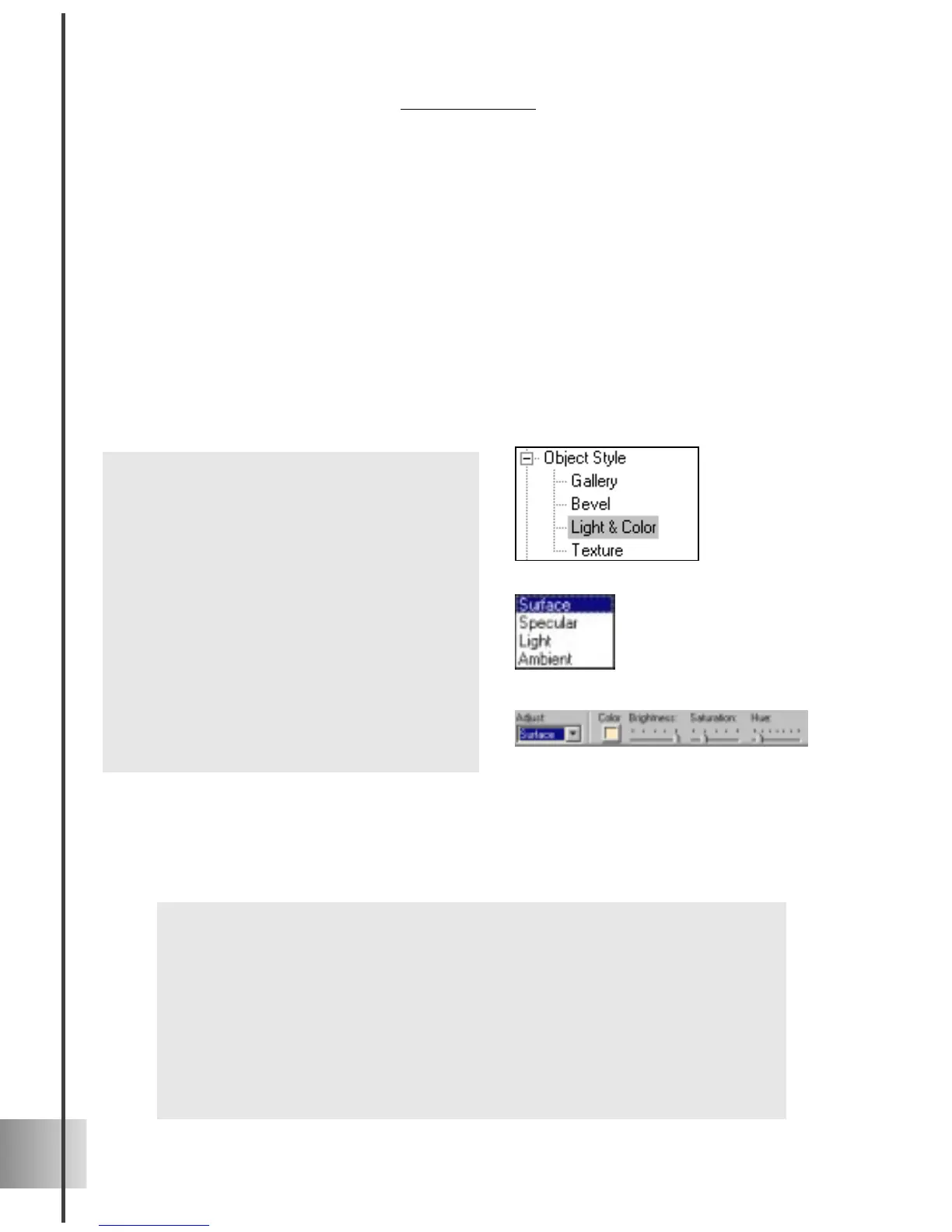 object. Here is a brief description of the types of light that you can control: