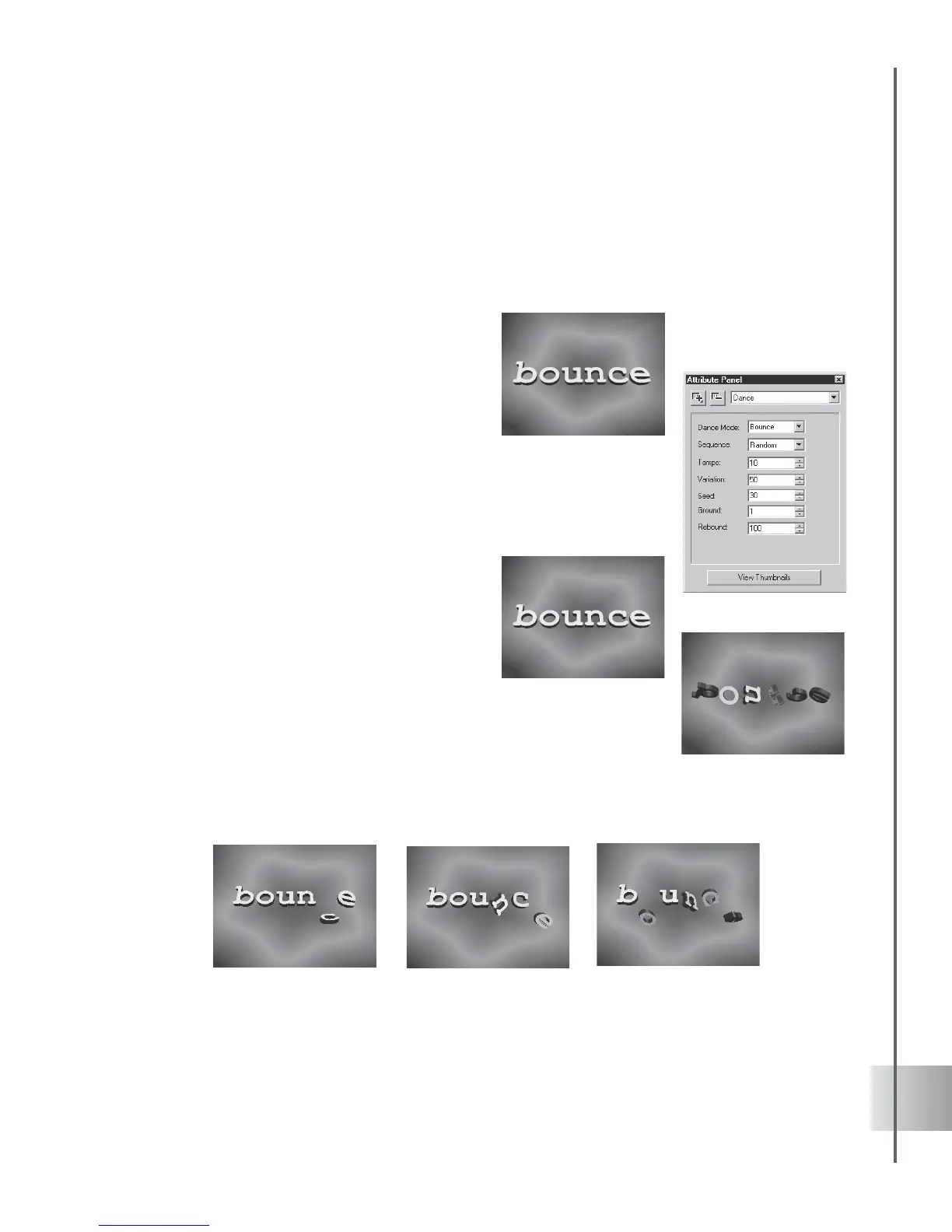 Scatter, Wave, and Bounce. The following tutorial shows you how to make a bouncing project.