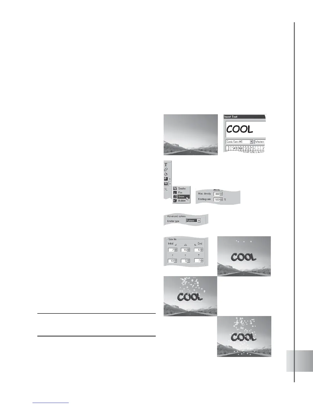 To simulate snow on a text object: