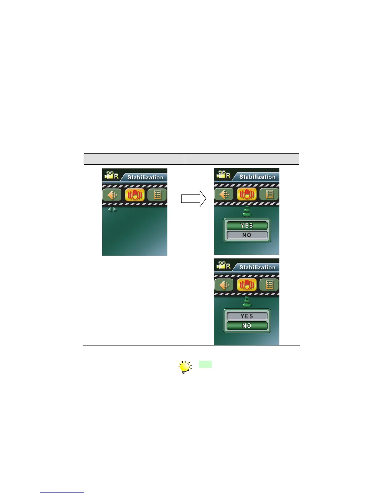 2. Use Up/Down buttons to select Motion Stabilization then press Enter/Right buttons to switch