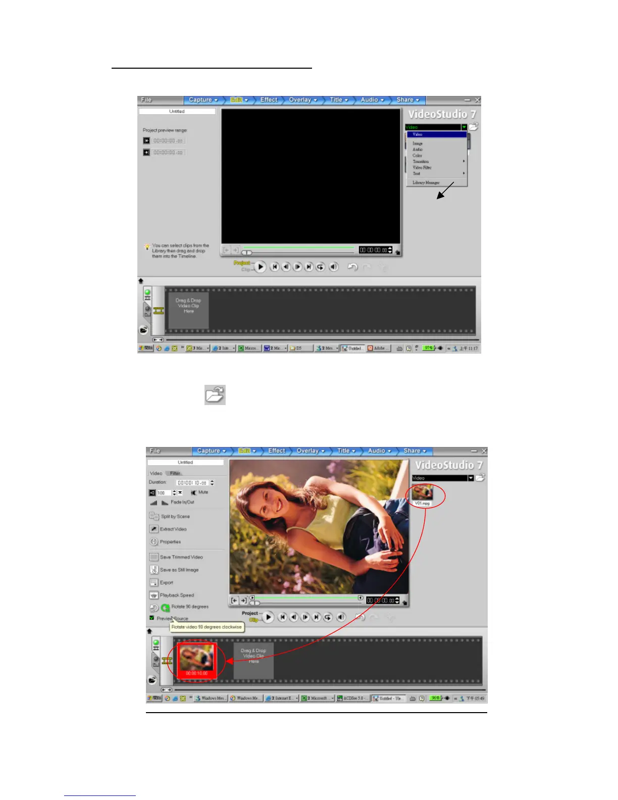 (2) Click Folder Icon on the right side of the screen to load a video clip, then drag and