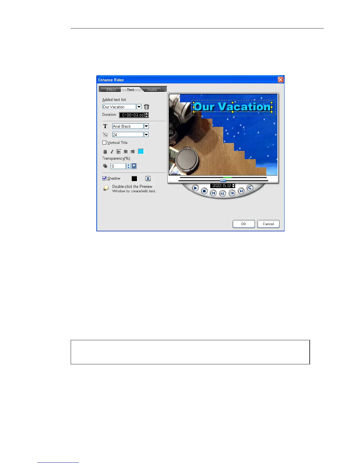 2. Double-click the Preview Window to enter the text. Specify the