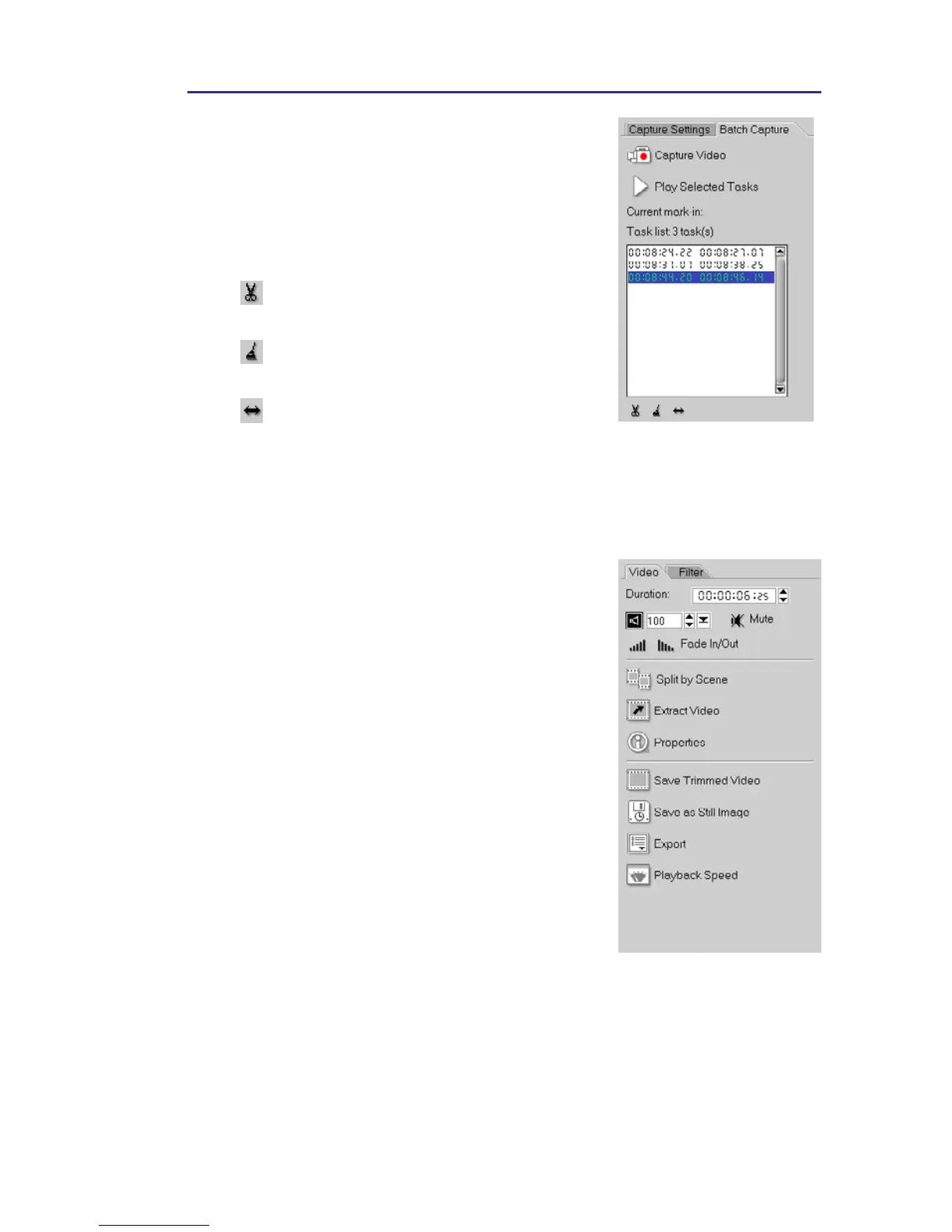 • Split by Scene: Splits a captured DV AVI