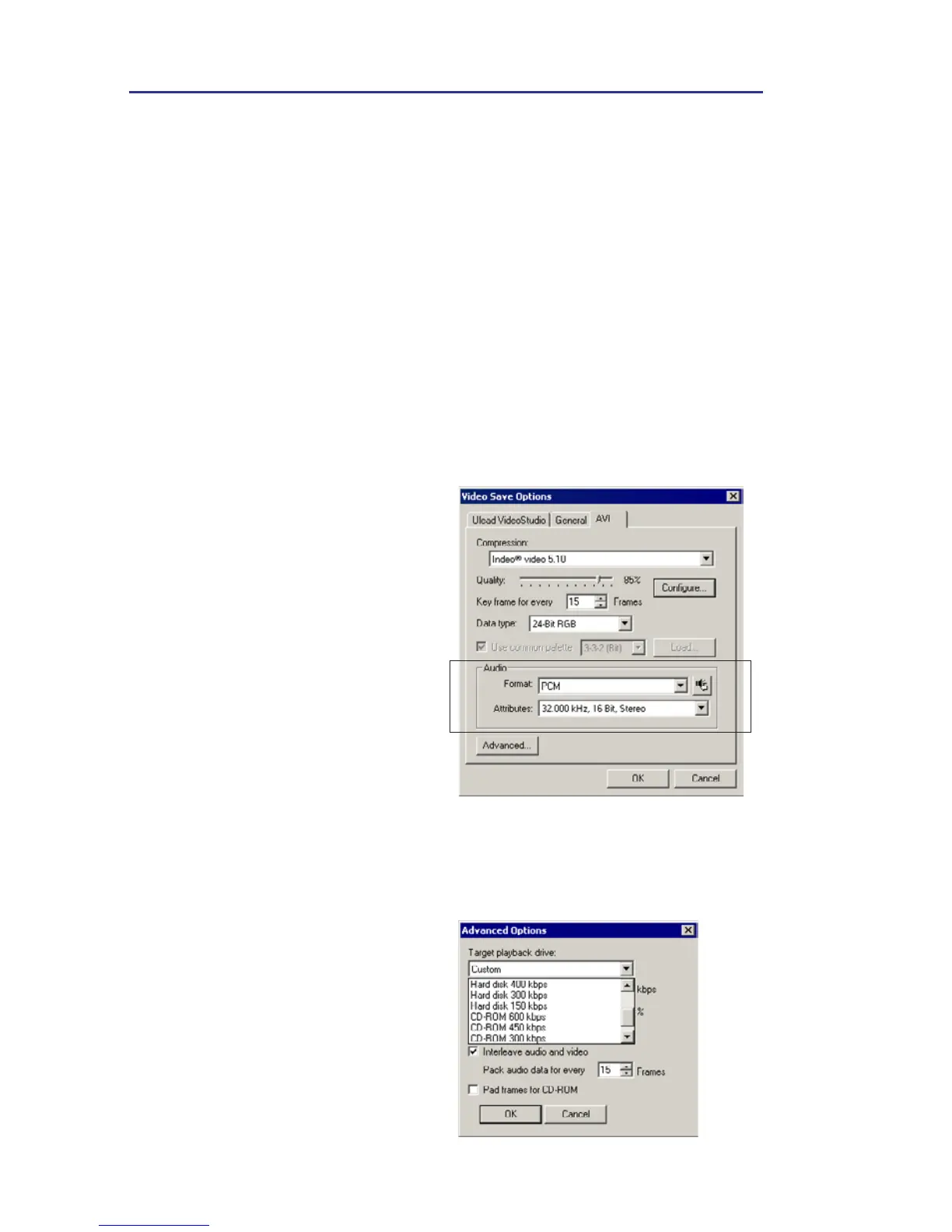 Click Advanced in the AVI Tab to specify a specific medium for