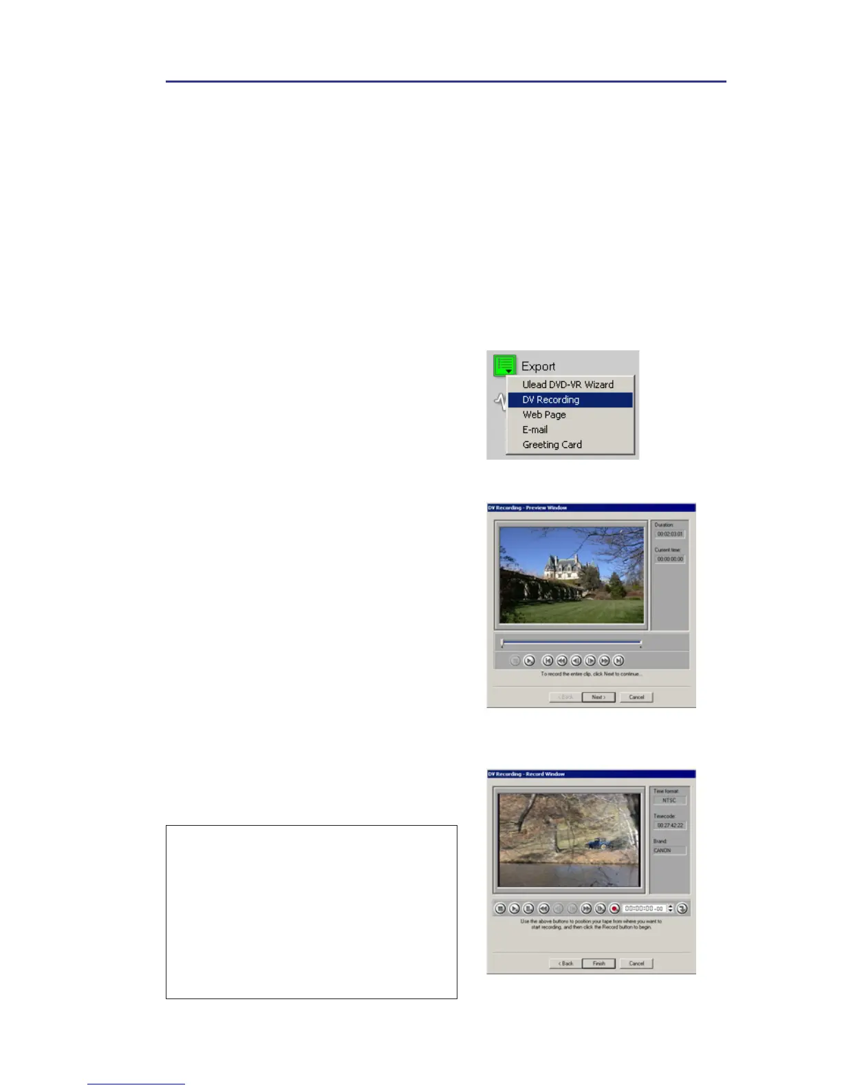 4. Click Export: DV Recording.