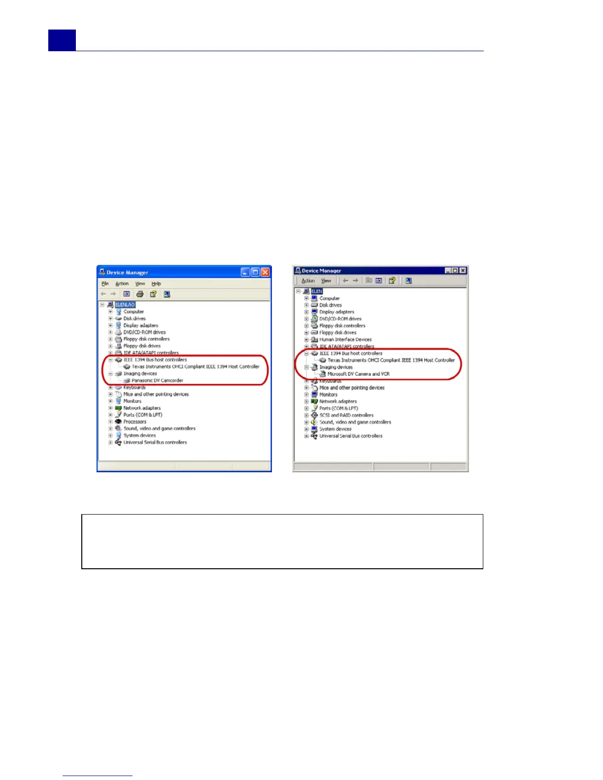 • Sound, video and game controllers: 1394 camcorder (For