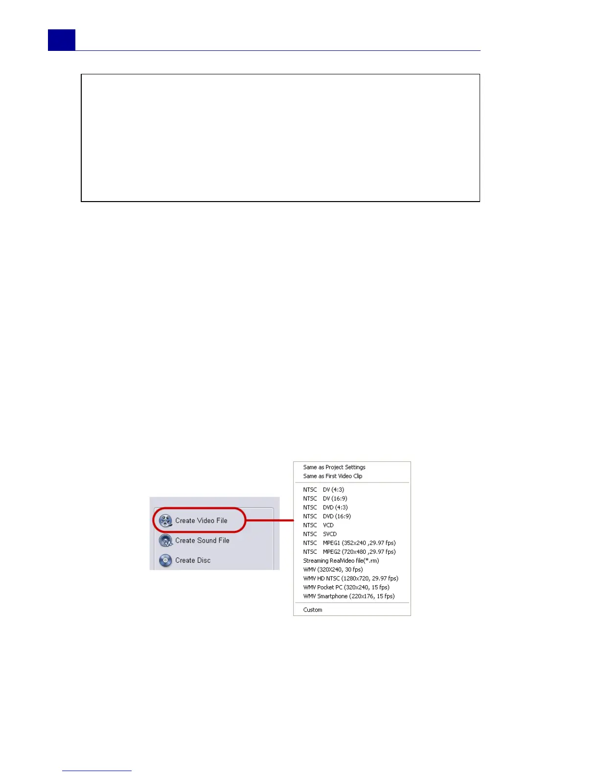 1. Click Create Video File in the Options Panel. A selection menu