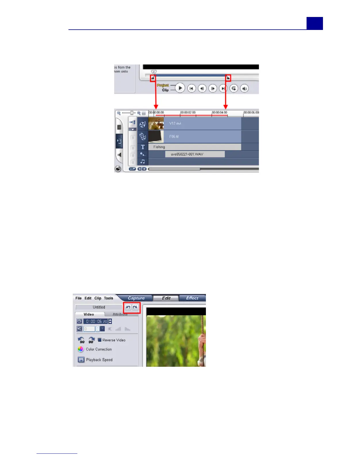 1. Use the Trim Handles or the Mark-in/out buttons to select the