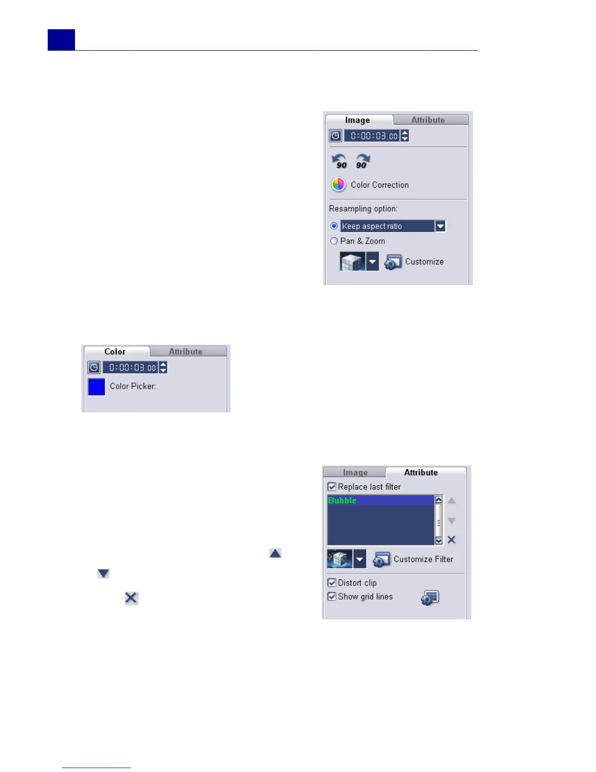 • Customize Filter: Allows you to define how a filter transitions