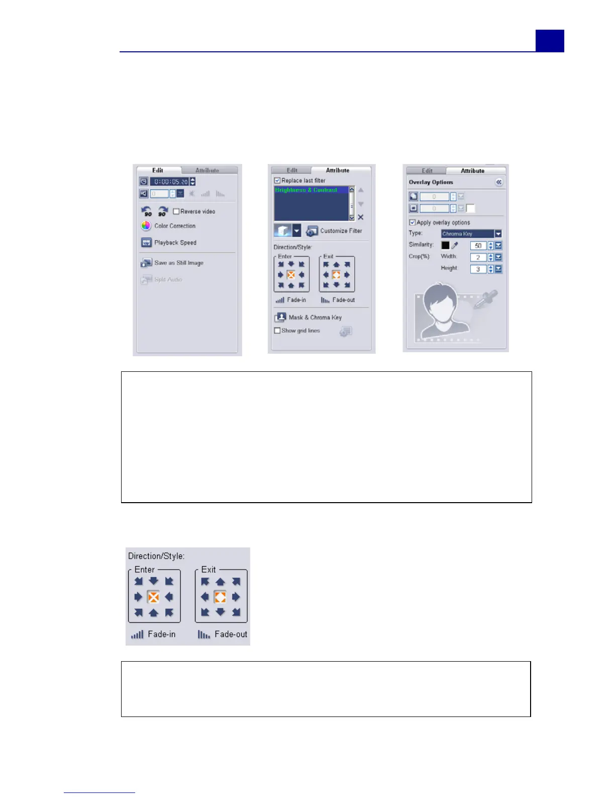 resize and reposition the clip, and more. (See “Attribute tab” on
