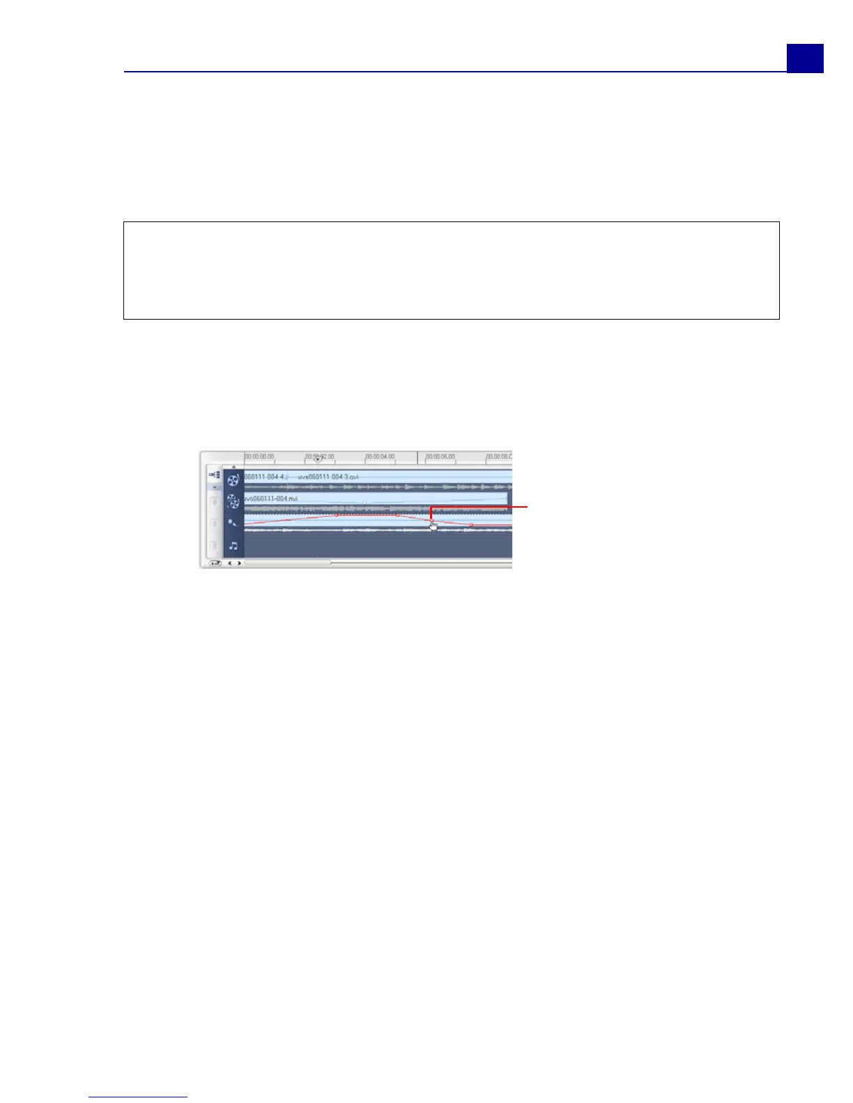 Clips that contain audio are displayed with a volume rubber band that you can