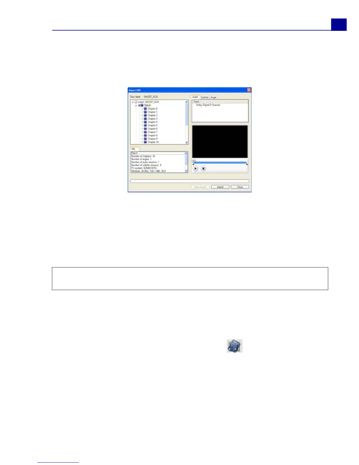 4. In the Import DVD window, select which DVD tracks to import in Label. Use