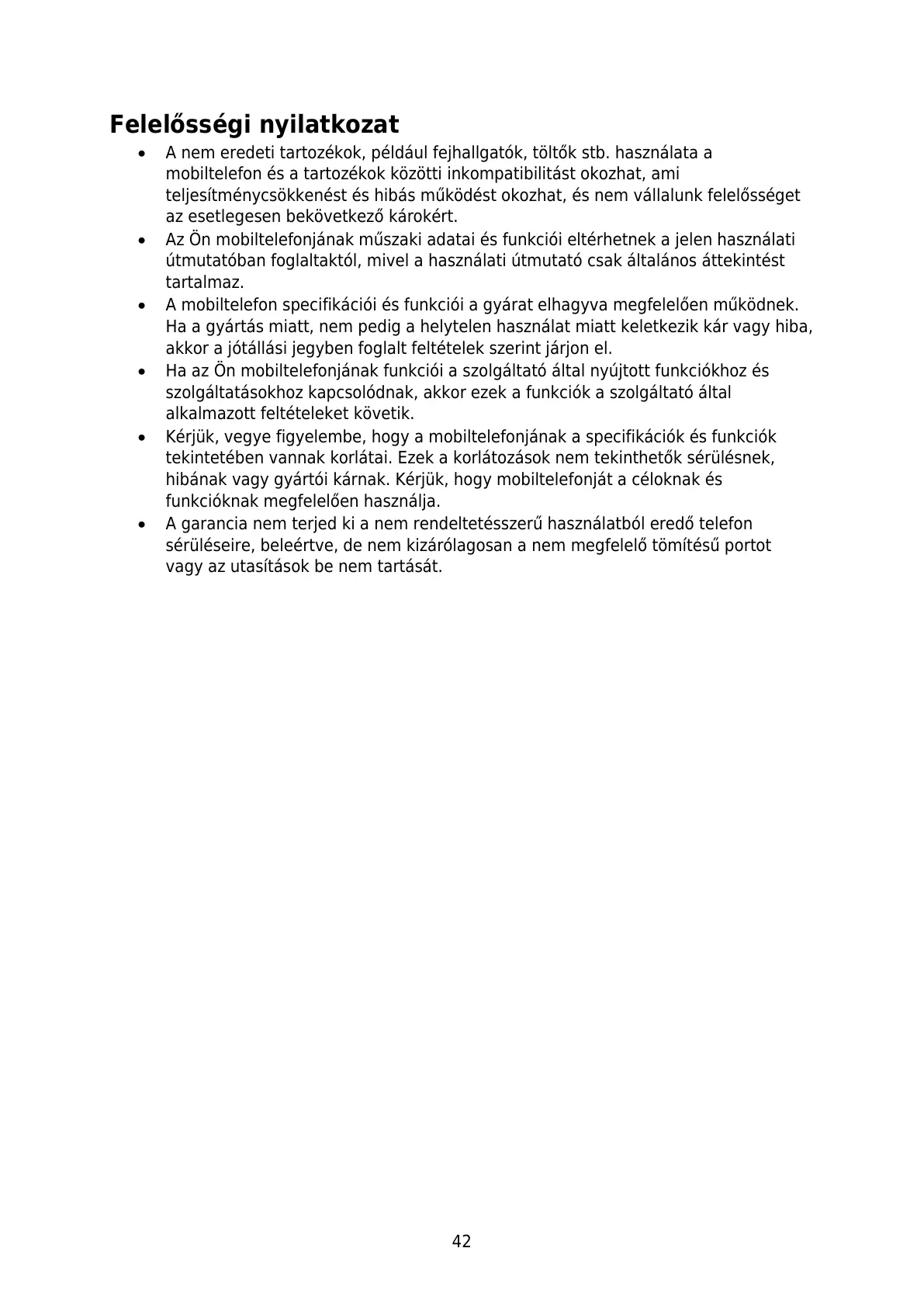 hibának vagy gyártói kárnak. Kérjük, hogy mobiltelefonját a céloknak és