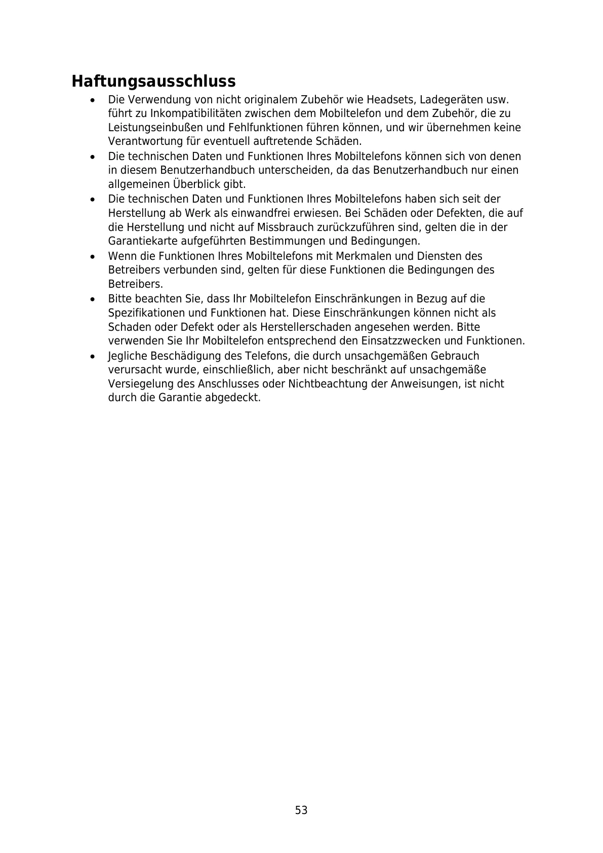Jegliche Beschädigung des Telefons, die durch unsachgemäßen Gebrauch